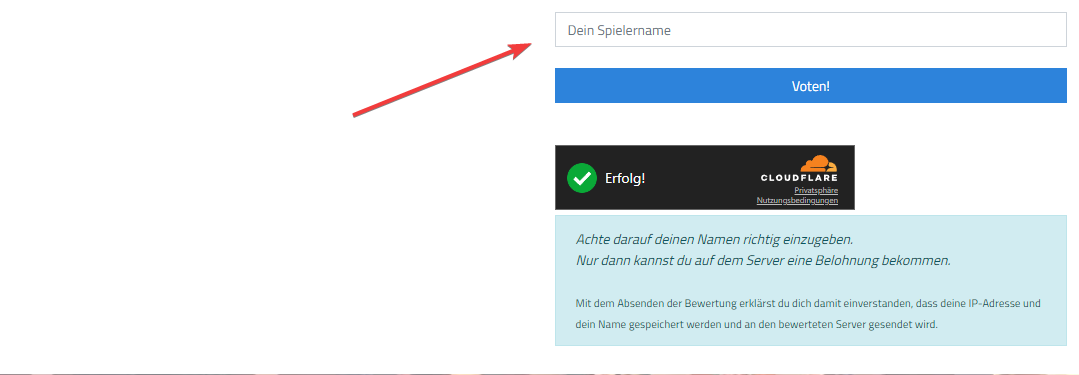 Auf der Website siehst du dann diesen Bereich. Gib einfach deinen Minecraft-Namen ein, um dir einen Vote-Token zu sichern.